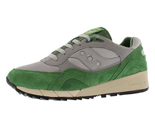 Saucony Shadow 6000 Shoes Grey Green These trainers come equipped with full on 1990s flair. They are constructed of a rubber sole with a unique triangular sole design to ensure excellent grip, high quality suede uppers with breathable inserts to allow air flow , a thick polyurethane midsole to absorb any bumps in the road and cushioning in the heel and midsole. Suede upper with breathable mesh inserts Branding on tongue and heel Classic old skool looks and styling EVA midsole Description by Adam